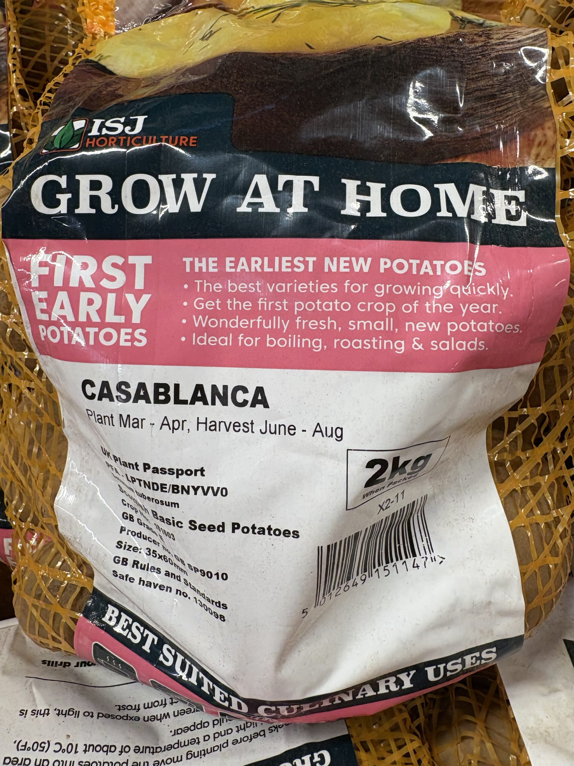 Casablanca seed potatoes are a new, white skinned first early with the potential to beat Winston on the show bench. A clean, smooth white skin with shallow eyes makes Casablanca an exhibitors delight while it’s cooking ability make it a chef’s dream with the ability to chip, bake or boil really nicely. Edible size crops can be achieved in 62 days from planting.